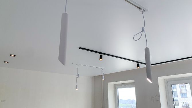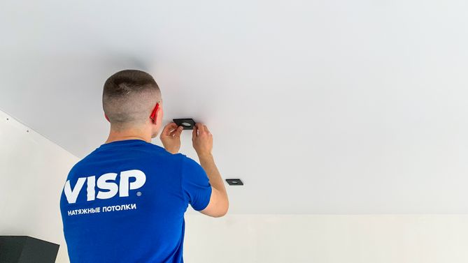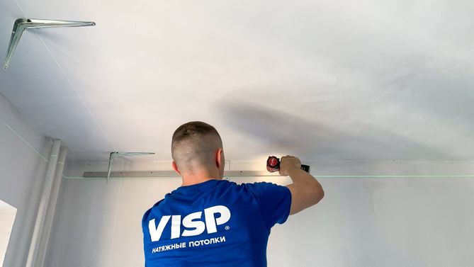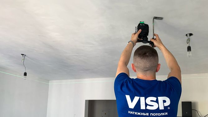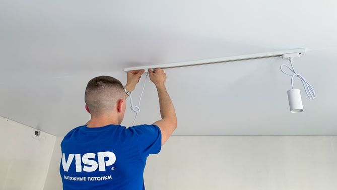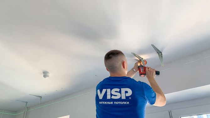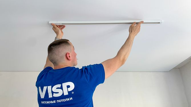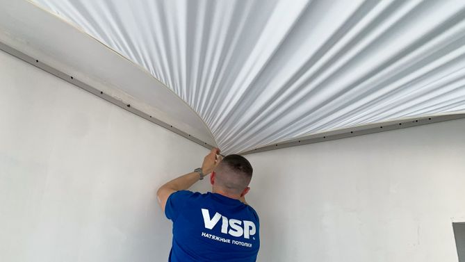 Монтаж потолка в гостиной 18 м2, полотно VISP S9020 (3.80)