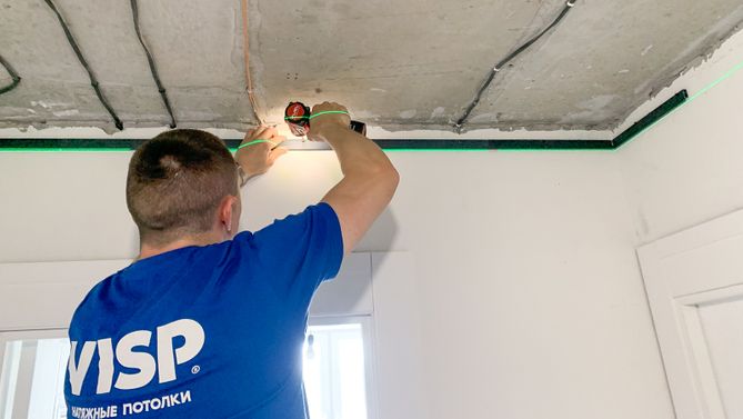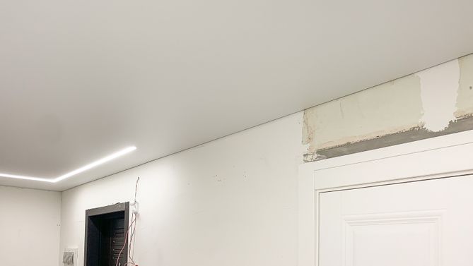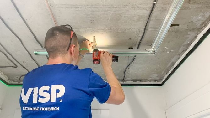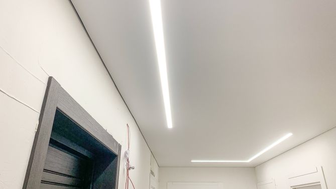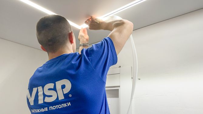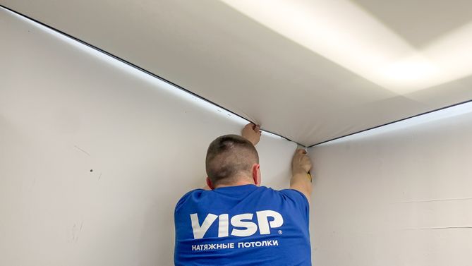 Монтаж потолка в коридоре 12 м2, полотно VISP M9001 (2.15)
