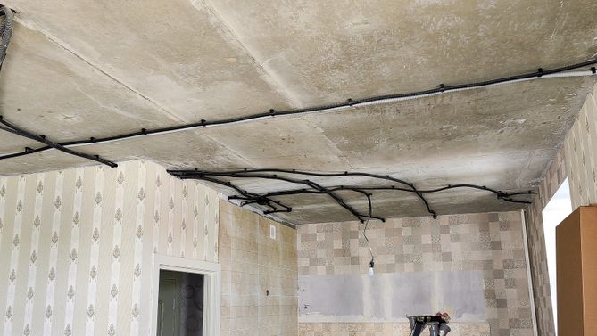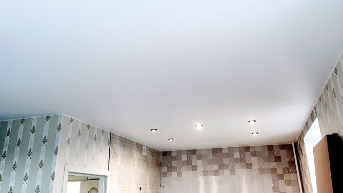 Монтаж потолка на кухне 25 м2, полотно VISP M9001 (4.90)