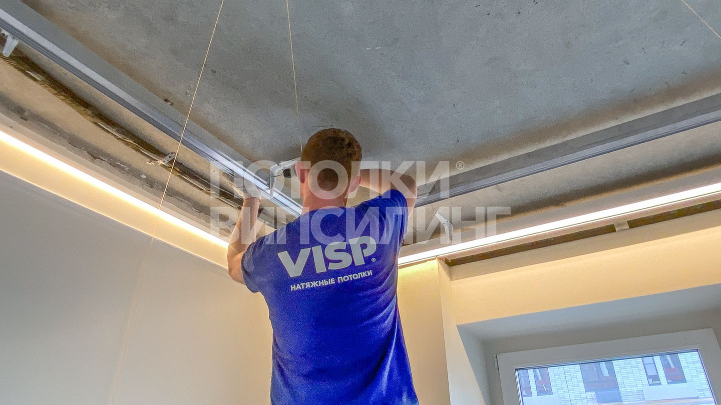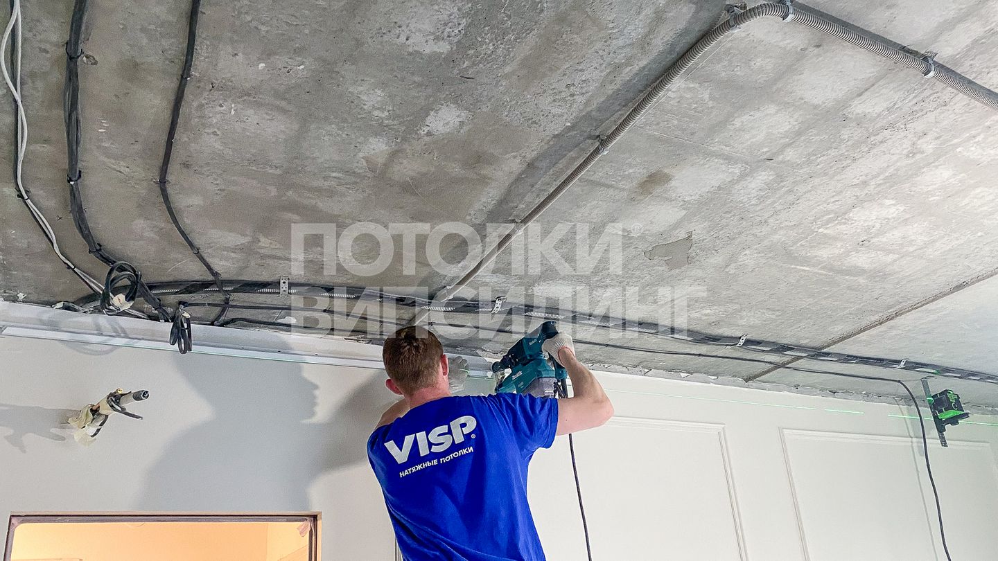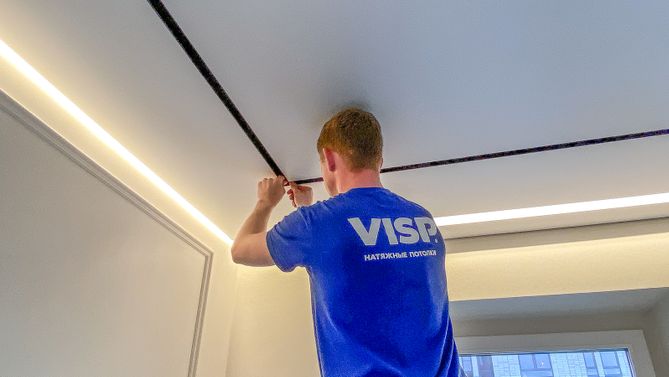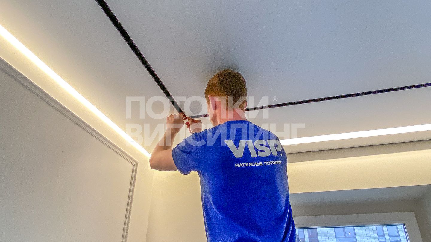 Монтаж потолка в гостиной 15 м2, полотно VISP S9020 (3.25)