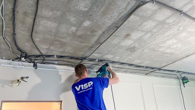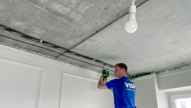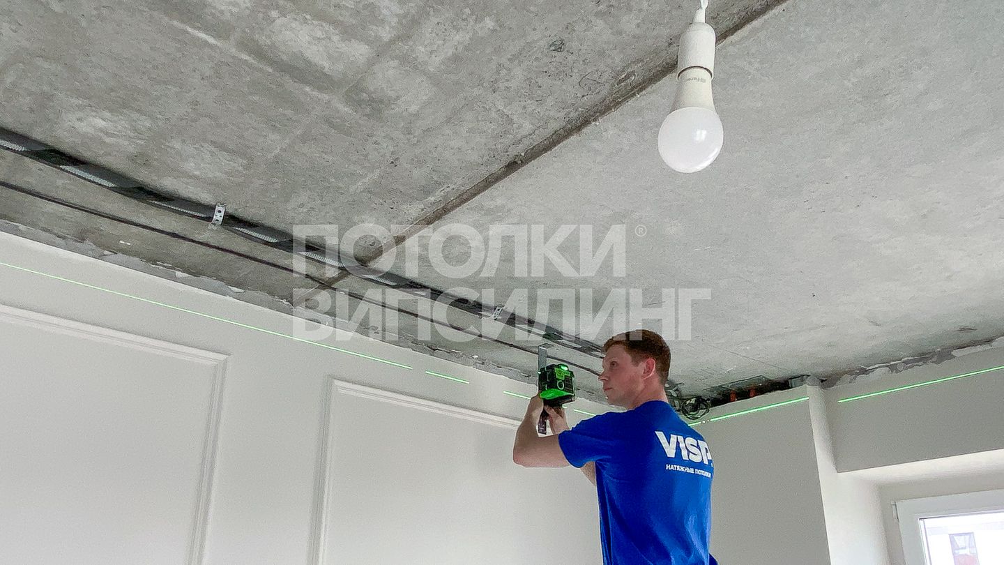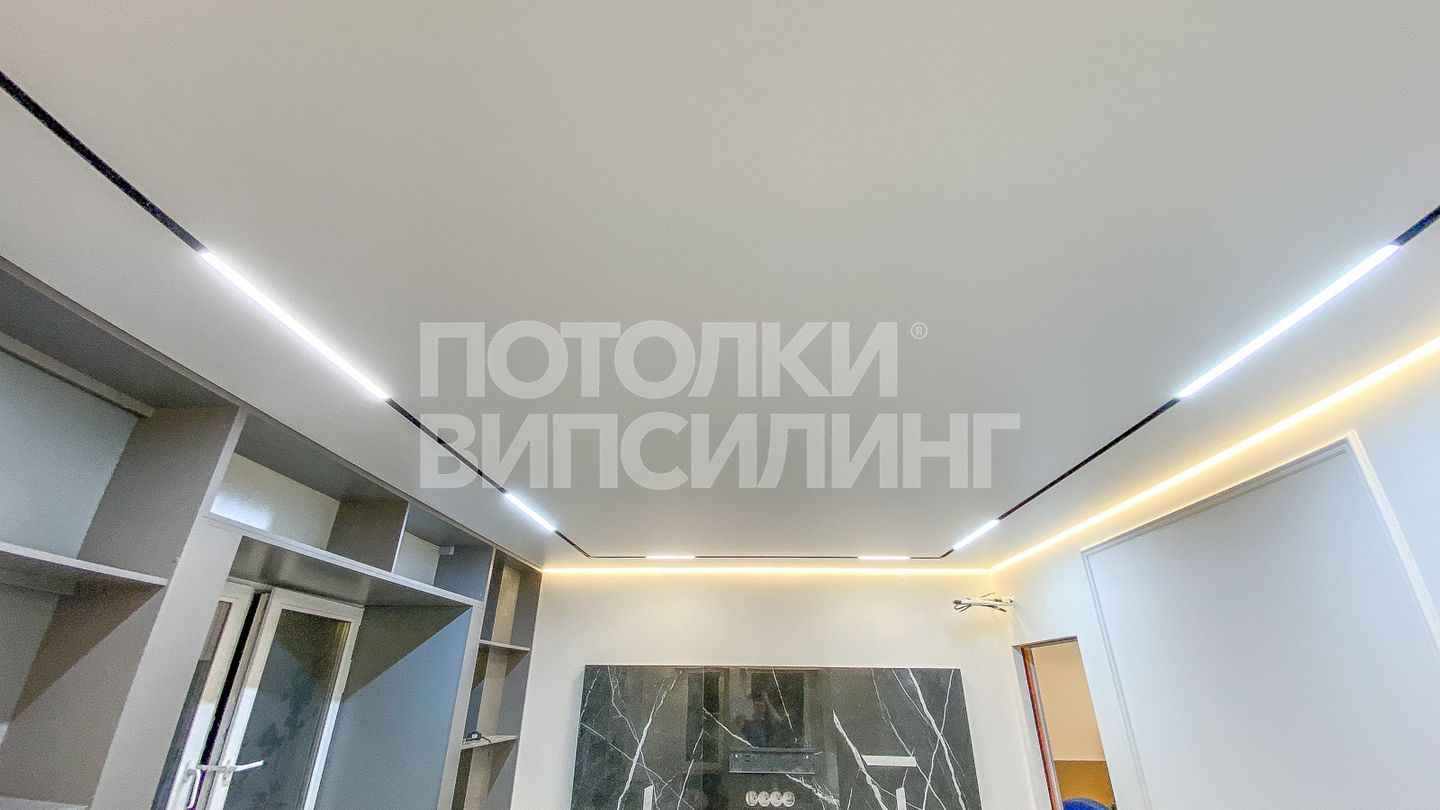 Монтаж потолка в гостиной 15 м2, полотно VISP S9020 (3.25)
