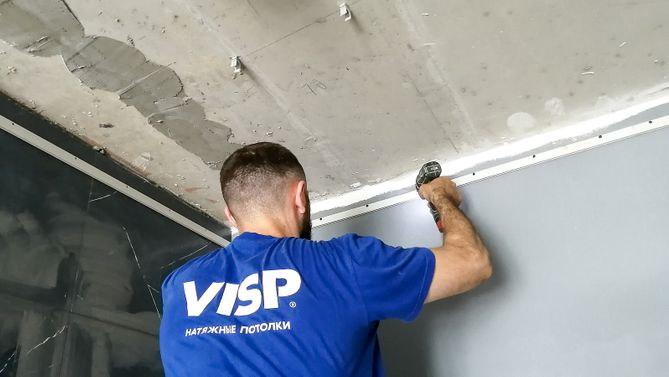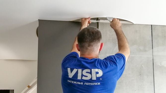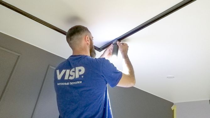 Монтаж потолка в гостиной 22 м2, полотно VISP S9020 (3.80)
