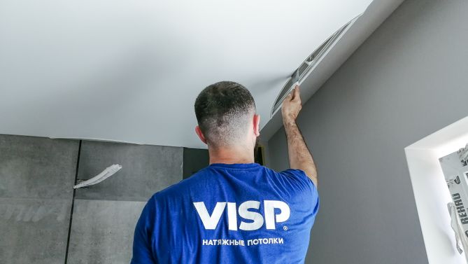 Монтаж потолка в спальне 11 м2, полотно VISP S9020 (3.25)