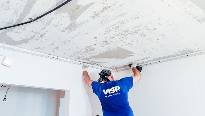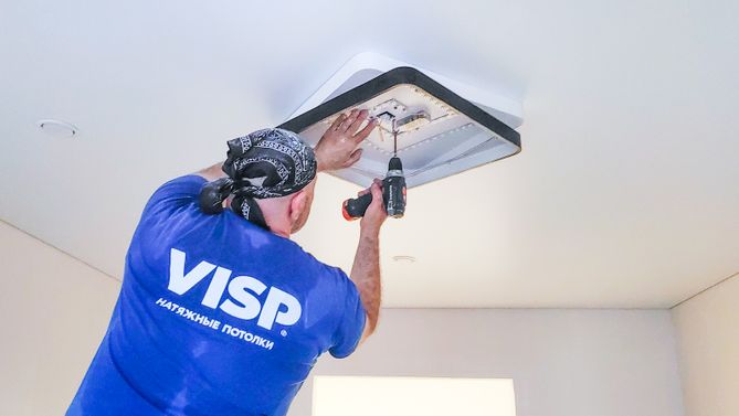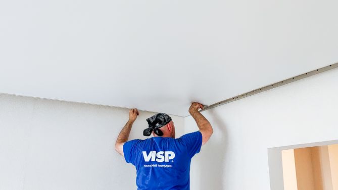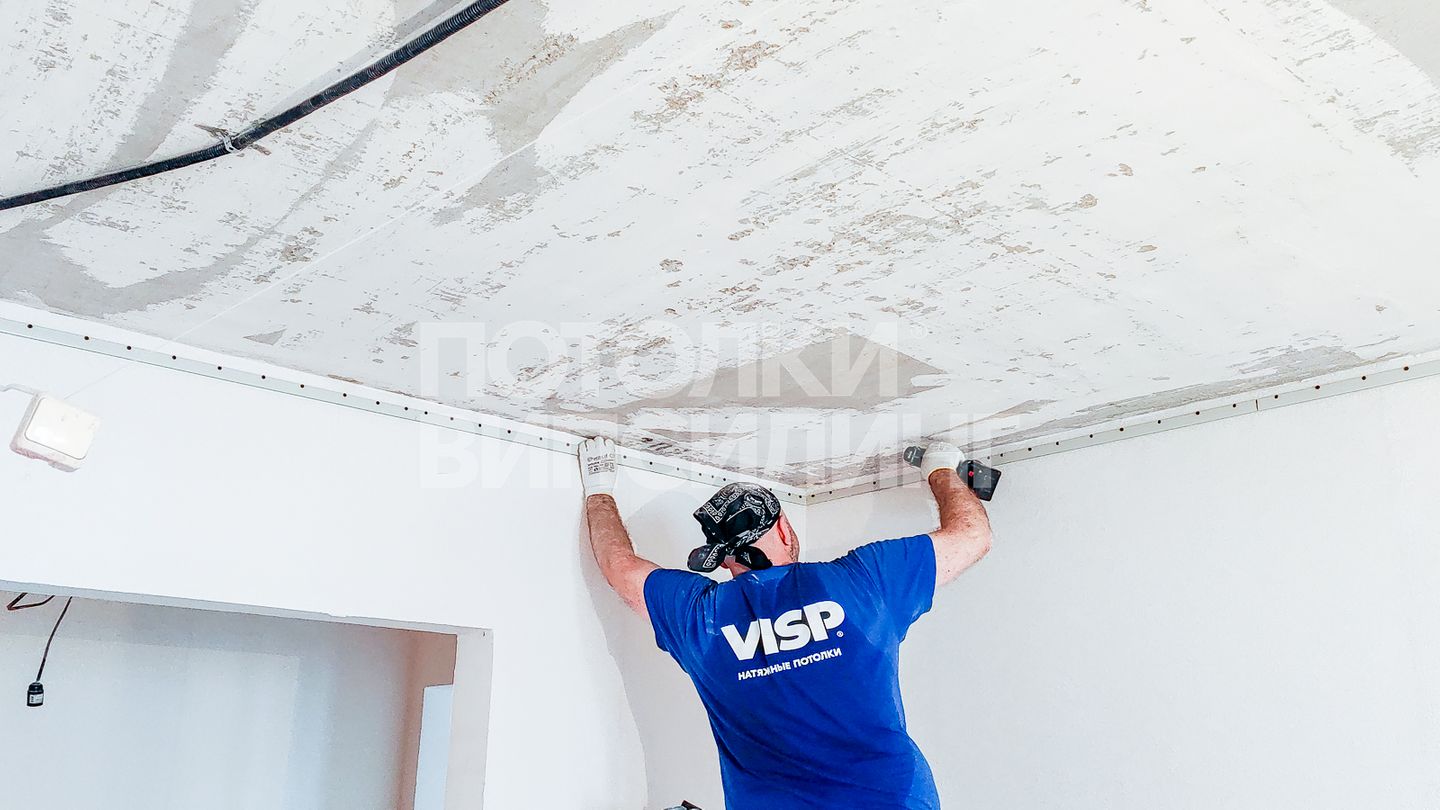 Монтаж потолка в гостиной 17 м2, полотно VISP M9001 (3.25)