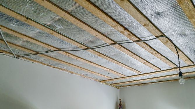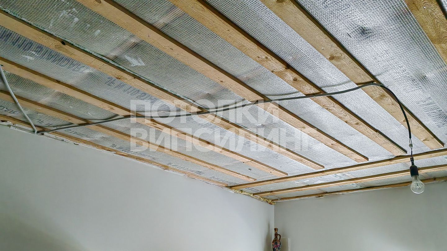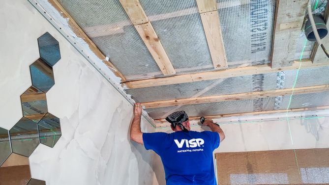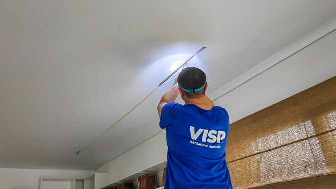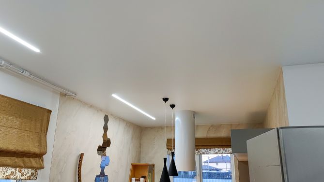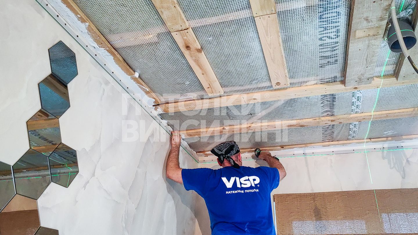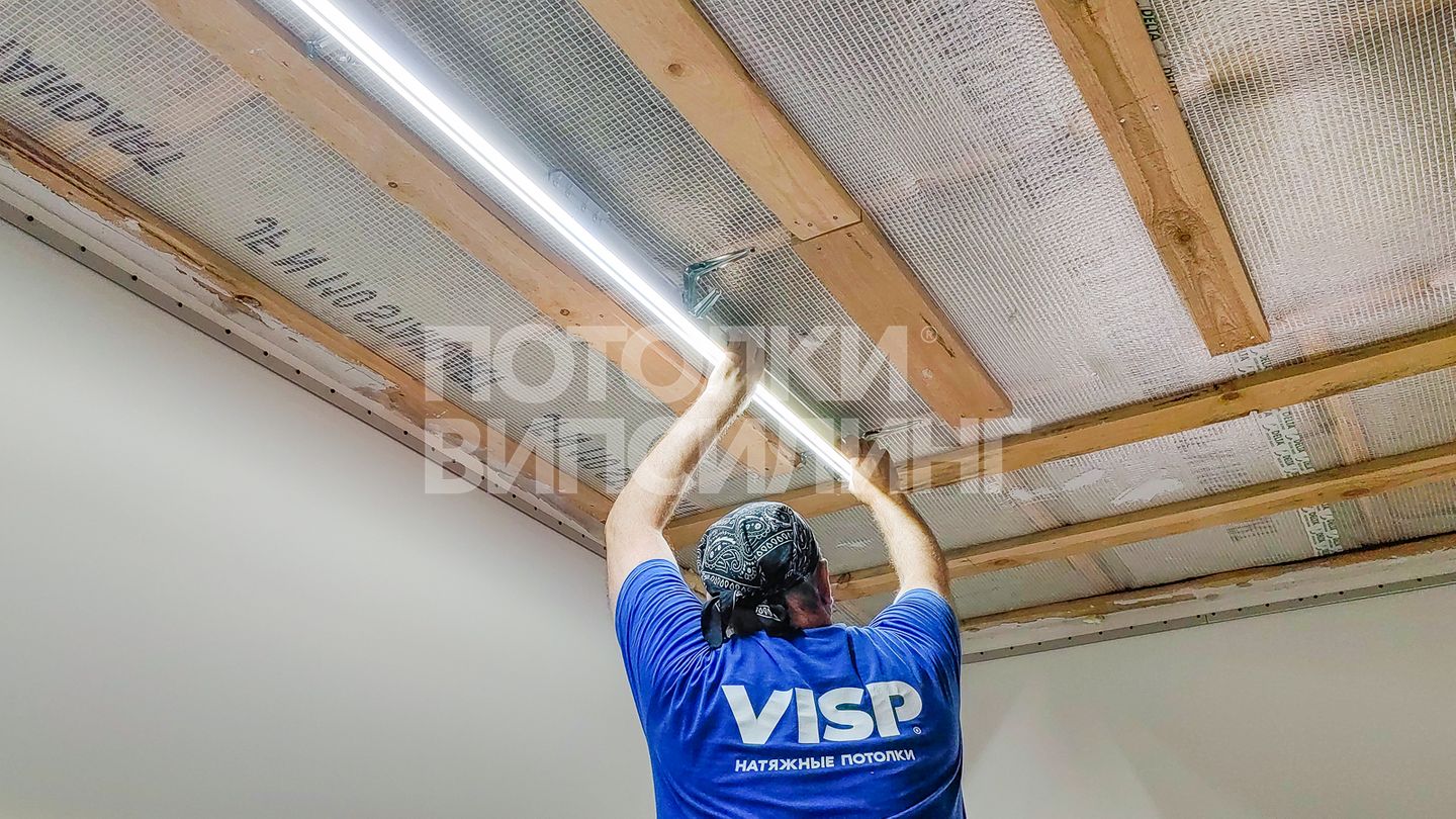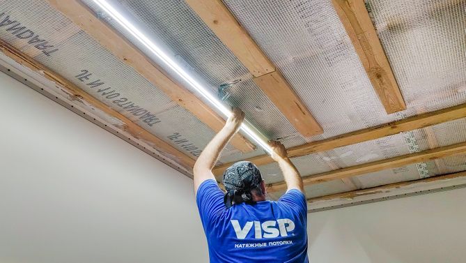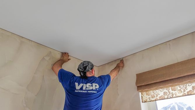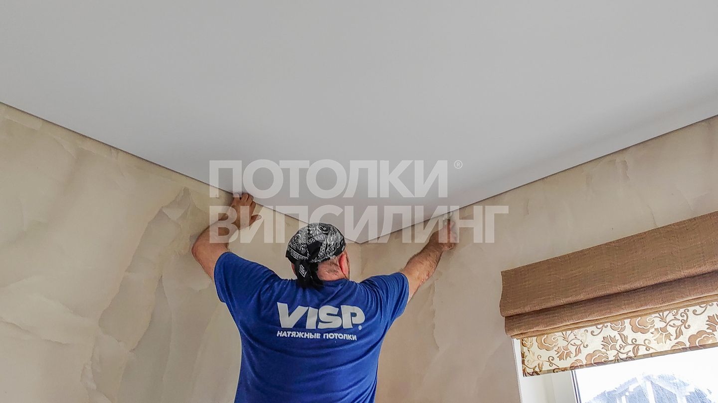 Монтаж потолка в гостиной 37 м2, полотно VISP M9001 (5.45)