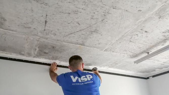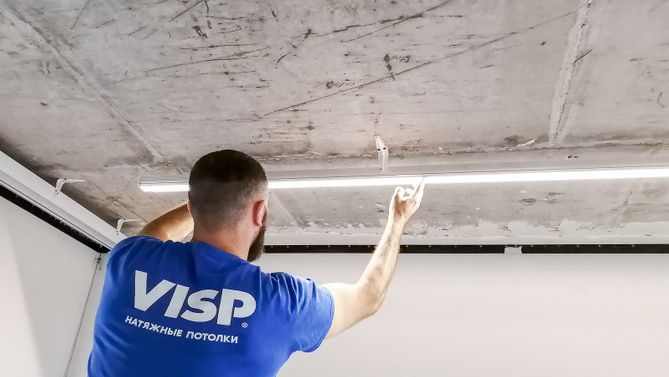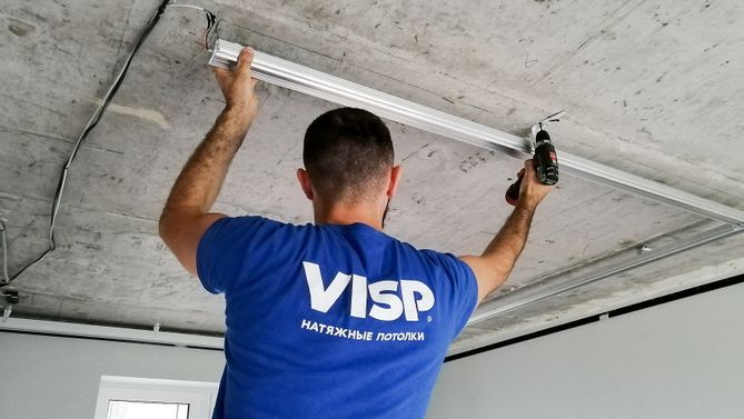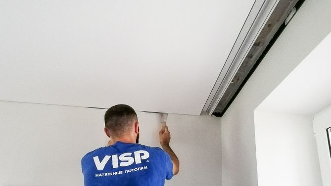 Монтаж потолка в гостиной 17 м2, полотно VISP M9001 (3.25)