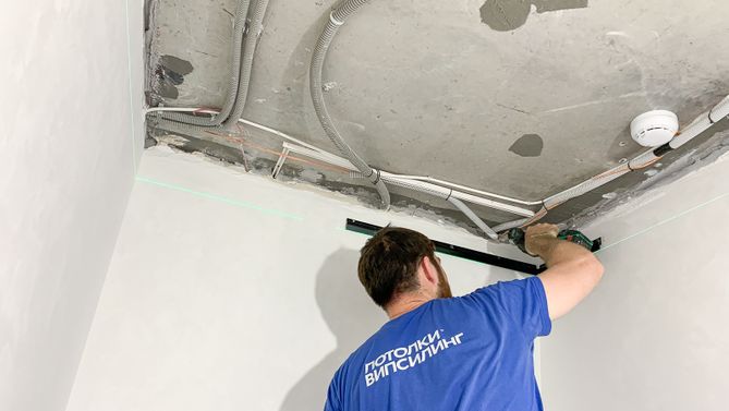 Монтаж потолка в квартире 35 м2, полотно VISP M9001 (5.45)