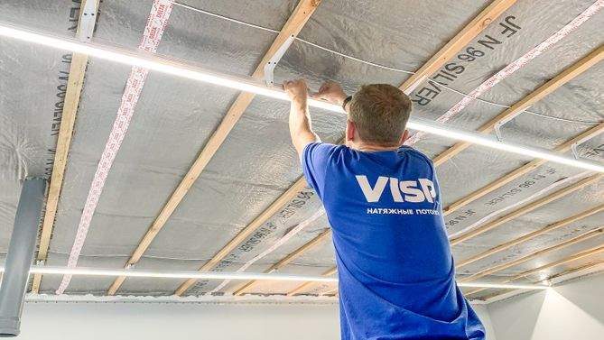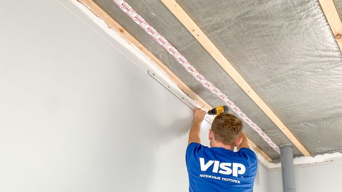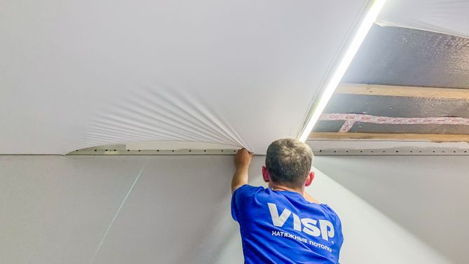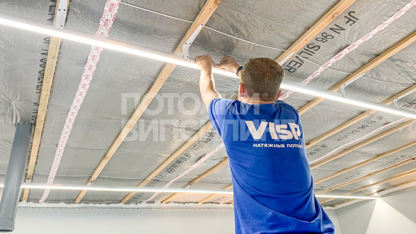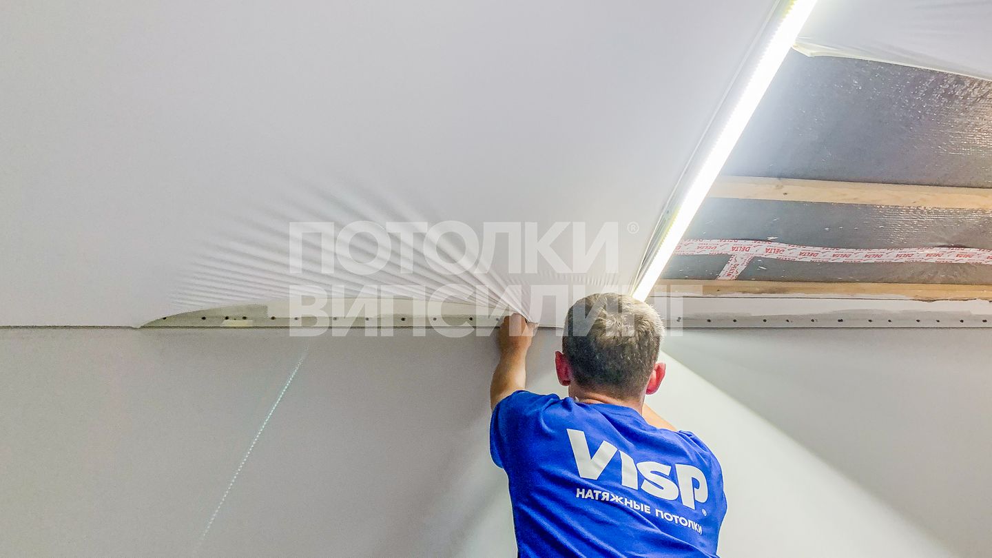 Монтаж потолка в бассейне 53 м2, полотно VISP M9001 (2.15)