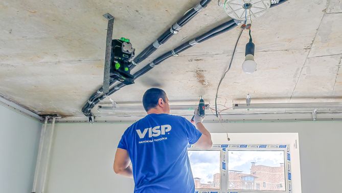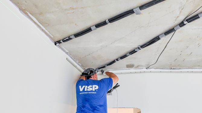 Монтаж потолка в детской 14 м2, полотно VISP M9001 (3.80)