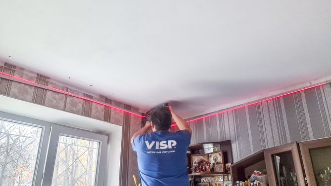 Монтаж потолка в спальне 12 м2, полотно VISP M9001 (3.25)