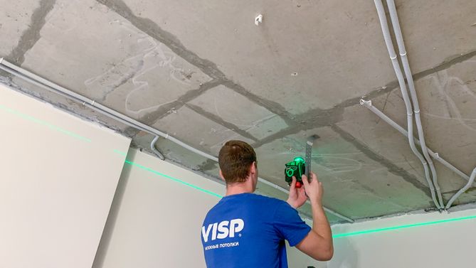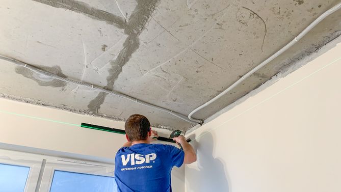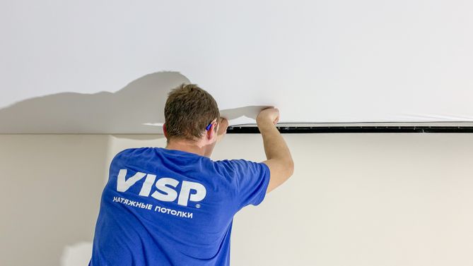 Монтаж потолка в спальне 13 м2, полотно VISP M9001 (3.25)
