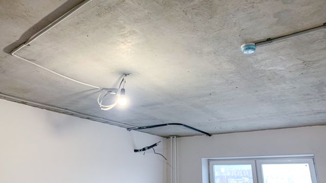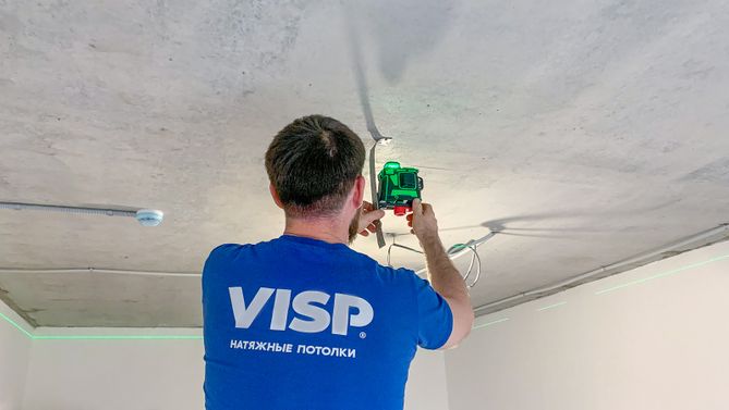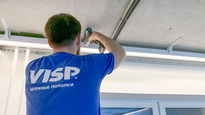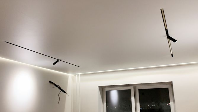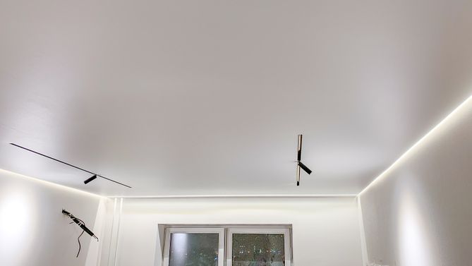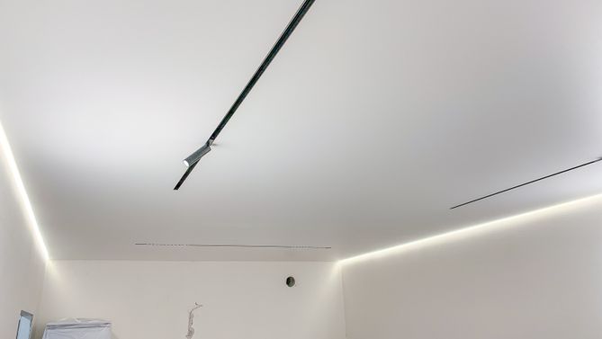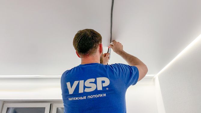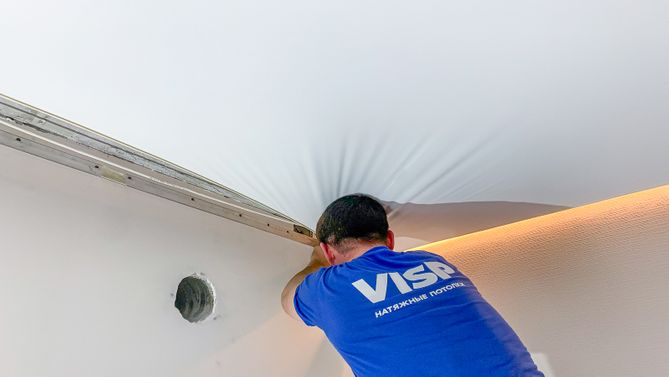 Монтаж потолка в гостиной 21 м2, полотно VISP M9001 (3.80)