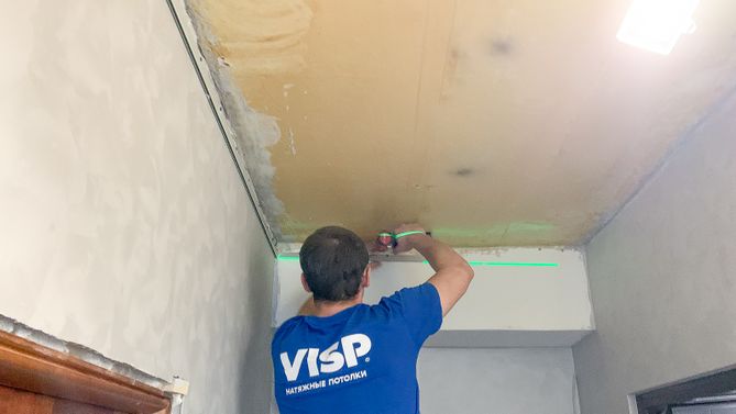Монтаж потолка на кухне 9 м2, полотно VISP S9020 (2.60)