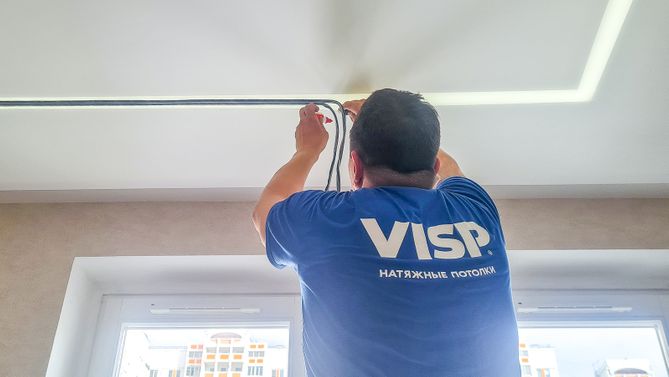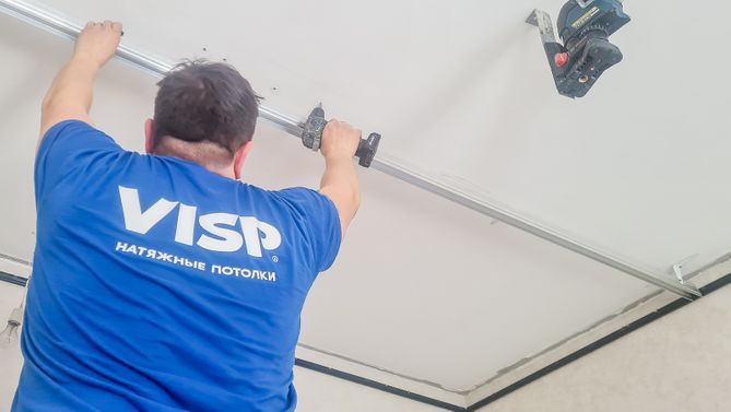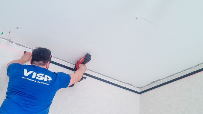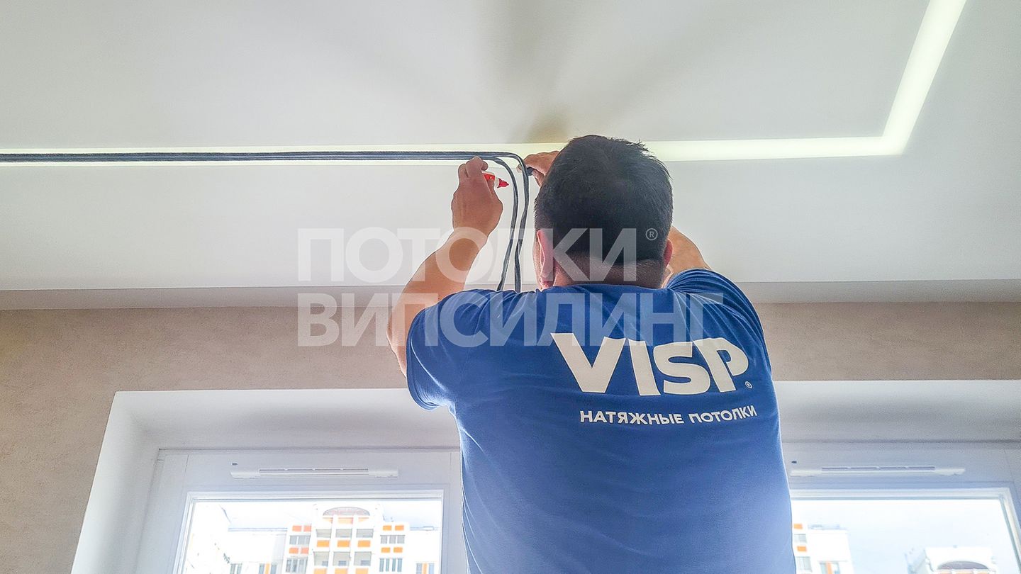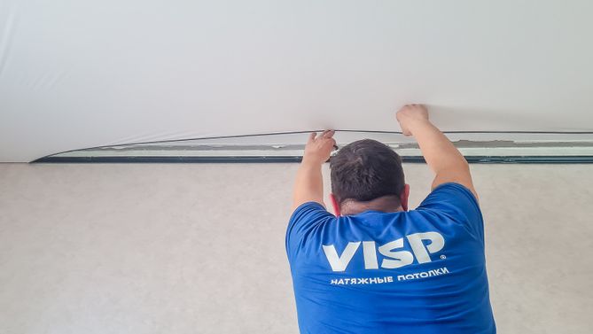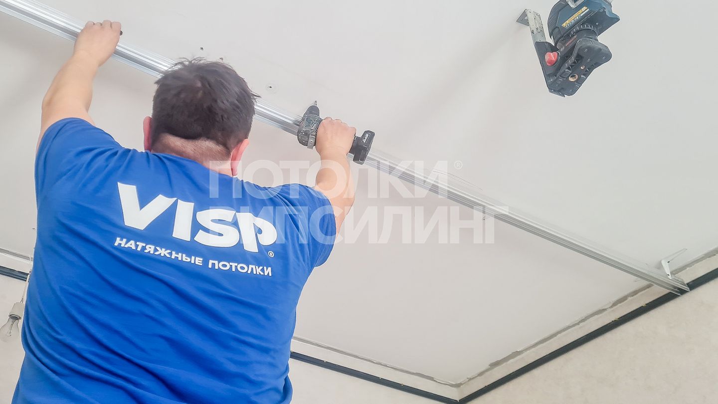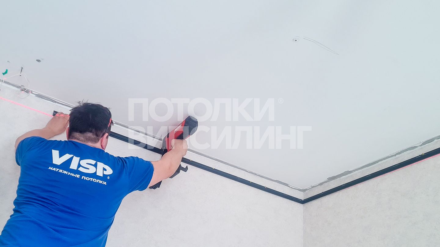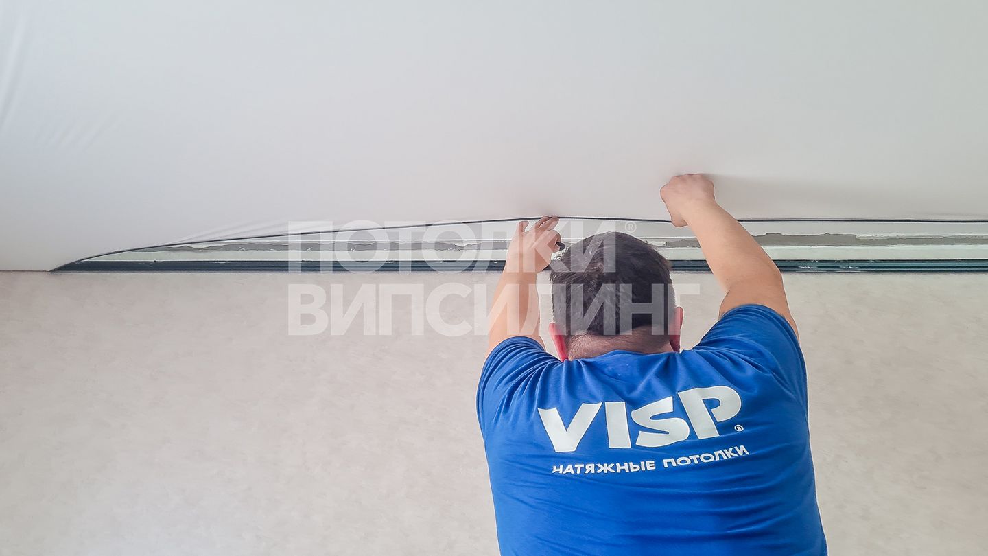 Монтаж потолка в гостиной 16 м2, полотно VISP M9001 (4.35)