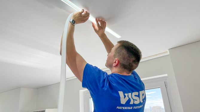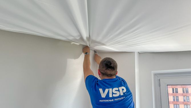 Монтаж потолка в квартире 18 м2, полотно VISP M9001 (3.50)