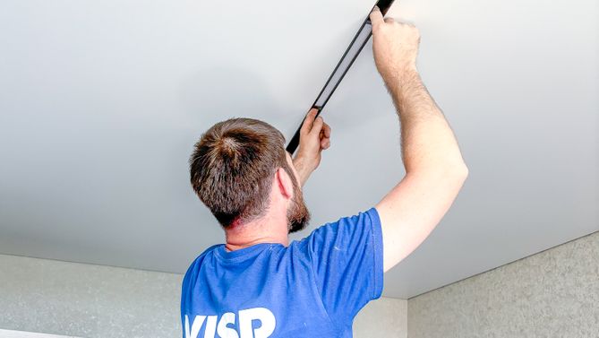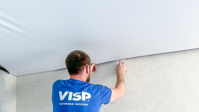 Монтаж потолка в спальне 13 м2, полотно VISP M9001 (3.25)
