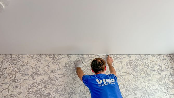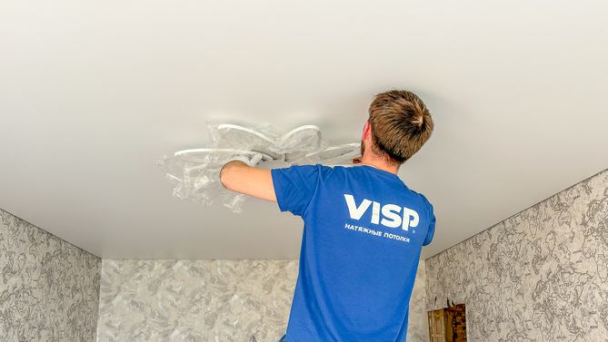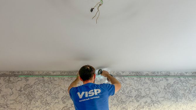 Монтаж потолка в гостиной 17 м2 с использованием пленки VISP M9001 (3.25)