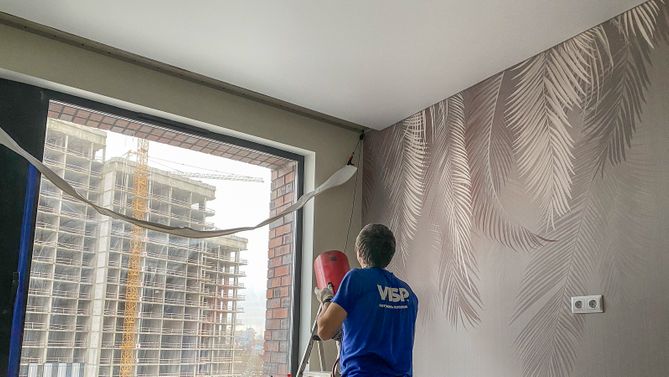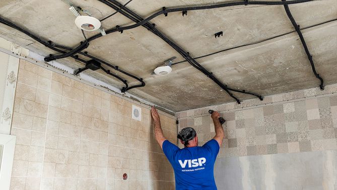 Монтаж потолка на кухне 5 м2, полотно VISP M9001 (2.60)