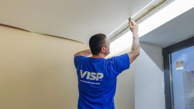Монтаж потолка на кухне 8 м2, полотно VISP M9001 (2.60)