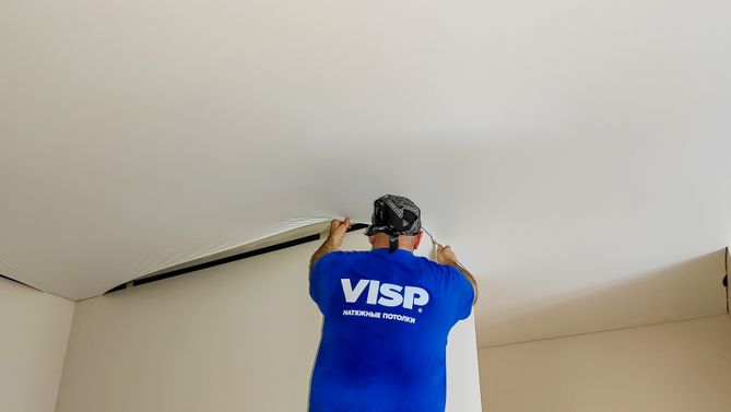Монтаж потолка для зала 15 м2, полотно VISP M9001 (3.50)
