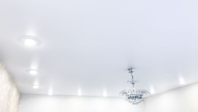Бесшовный матовый натяжной потолок для зала 17,4 м2