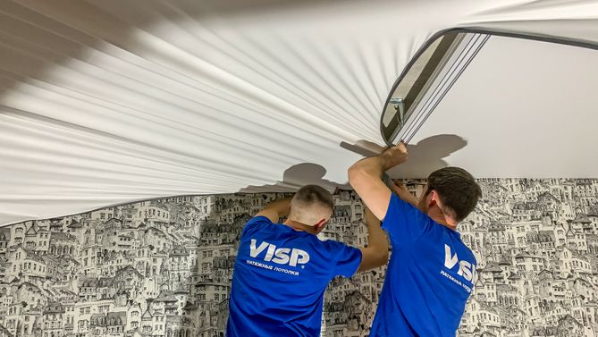 Монтаж потолка в детской 15 м2, полотно VISP L9001 (3.50)