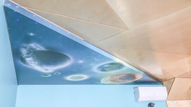 Натяжной потолок в детской 12 м2 с фотопечатью