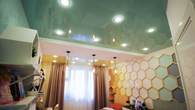 Бесшовный глянцевый натяжной потолок в детскую 17,7 м2