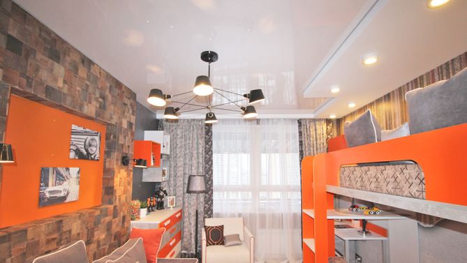 Бесшовный глянцевый натяжной потолок в детскую 12,6 м2