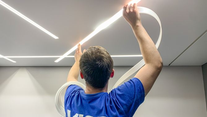 Монтаж потолка в гостиной 19 м2, полотно VISP S9020 (3.25)