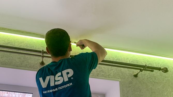 Монтаж потолка в спальне 17 м2, полотно VISP M9001 (3.25)