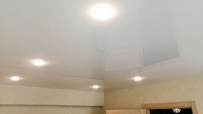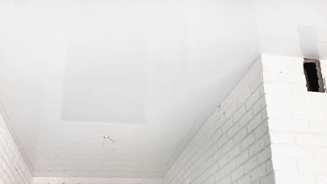 Бесшовный глянцевый натяжной потолок в коридор 16,3 м2
