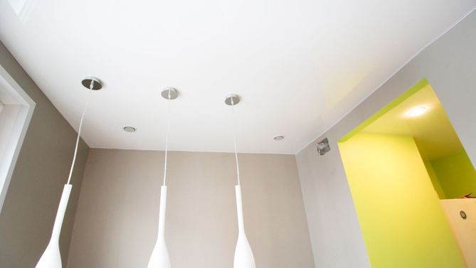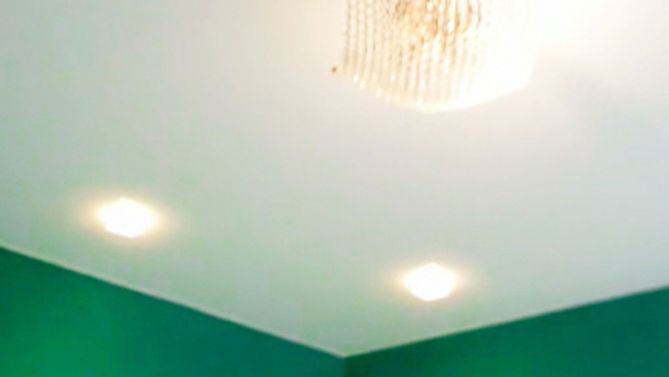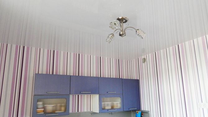 Бесшовный глянцевый натяжной потолок на кухню 7,1 м2