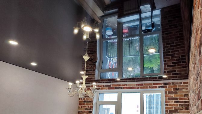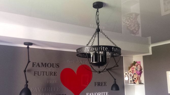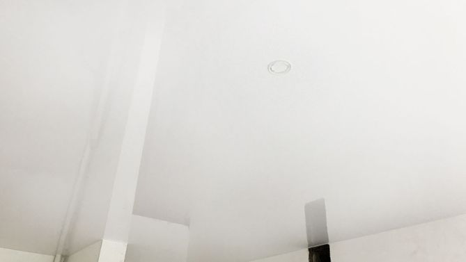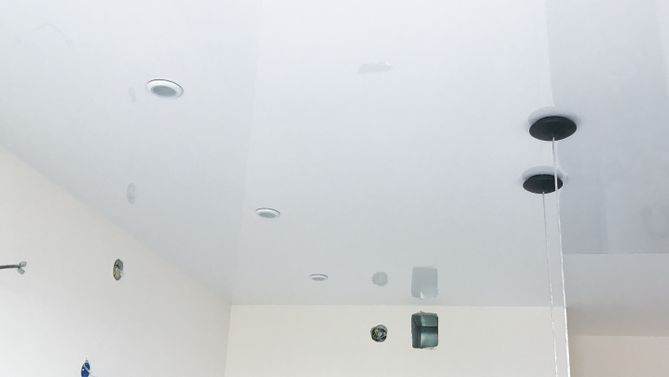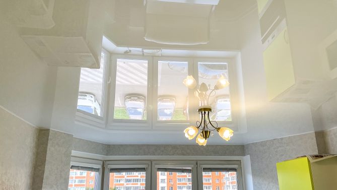 Бесшовный глянцевый натяжной потолок на кухню 10,8 м2