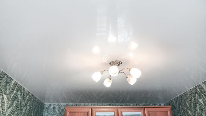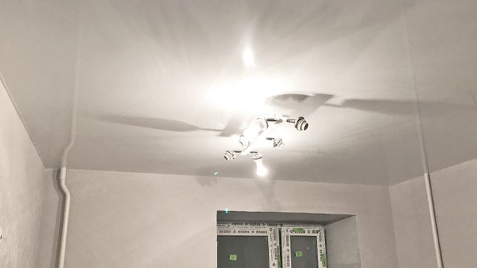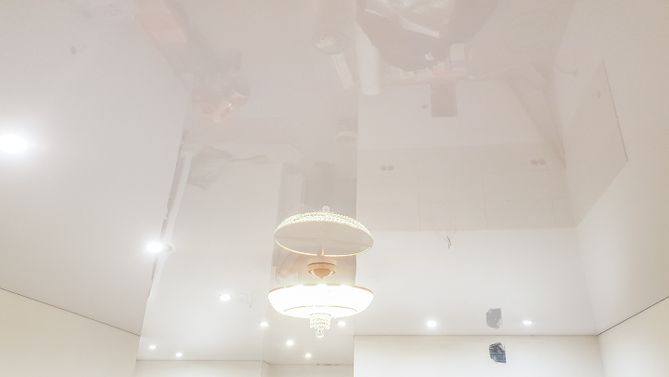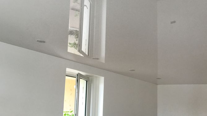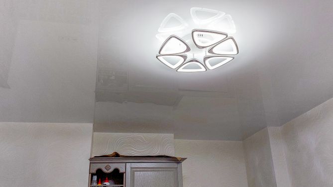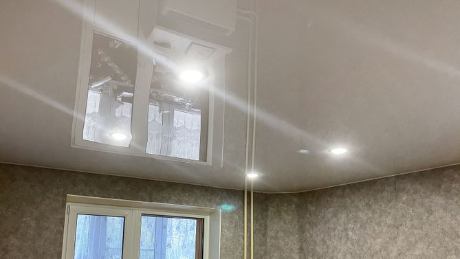 Бесшовный глянцевый натяжной потолок на кухню 7,8 м2