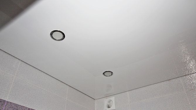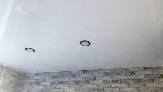 Бесшовный глянцевый натяжной потолок в ванную комнату 3,9 м2