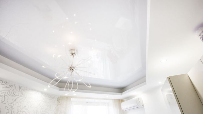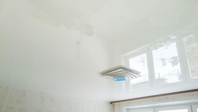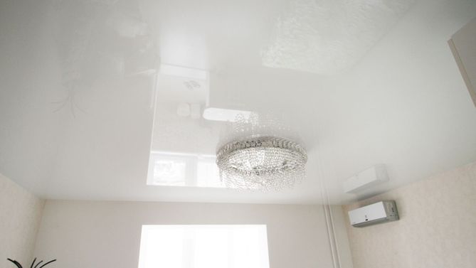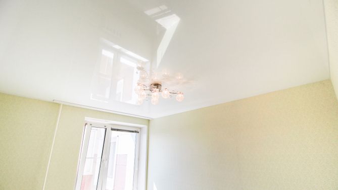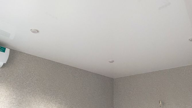 Бесшовный глянцевый натяжной потолок в спальню 9,9 м2
