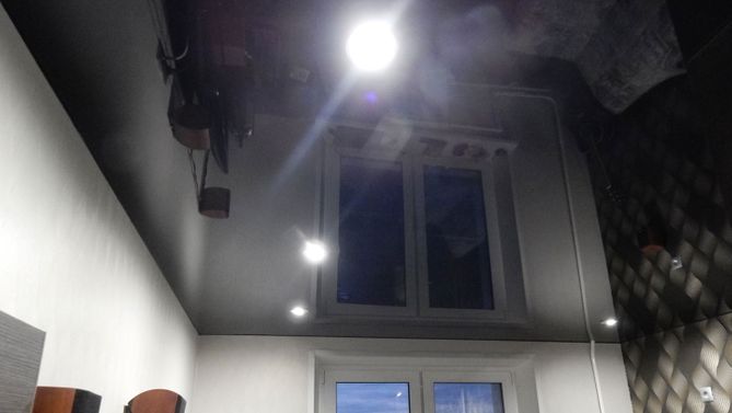 Бесшовный глянцевый натяжной потолок в спальню 11,8 м2
