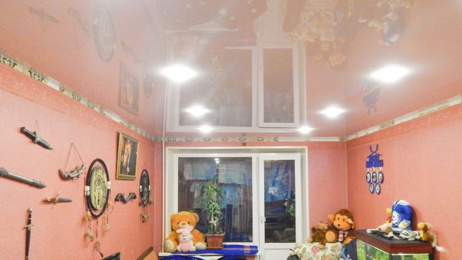 Бесшовный глянцевый натяжной потолок в детскую 17,7 м2