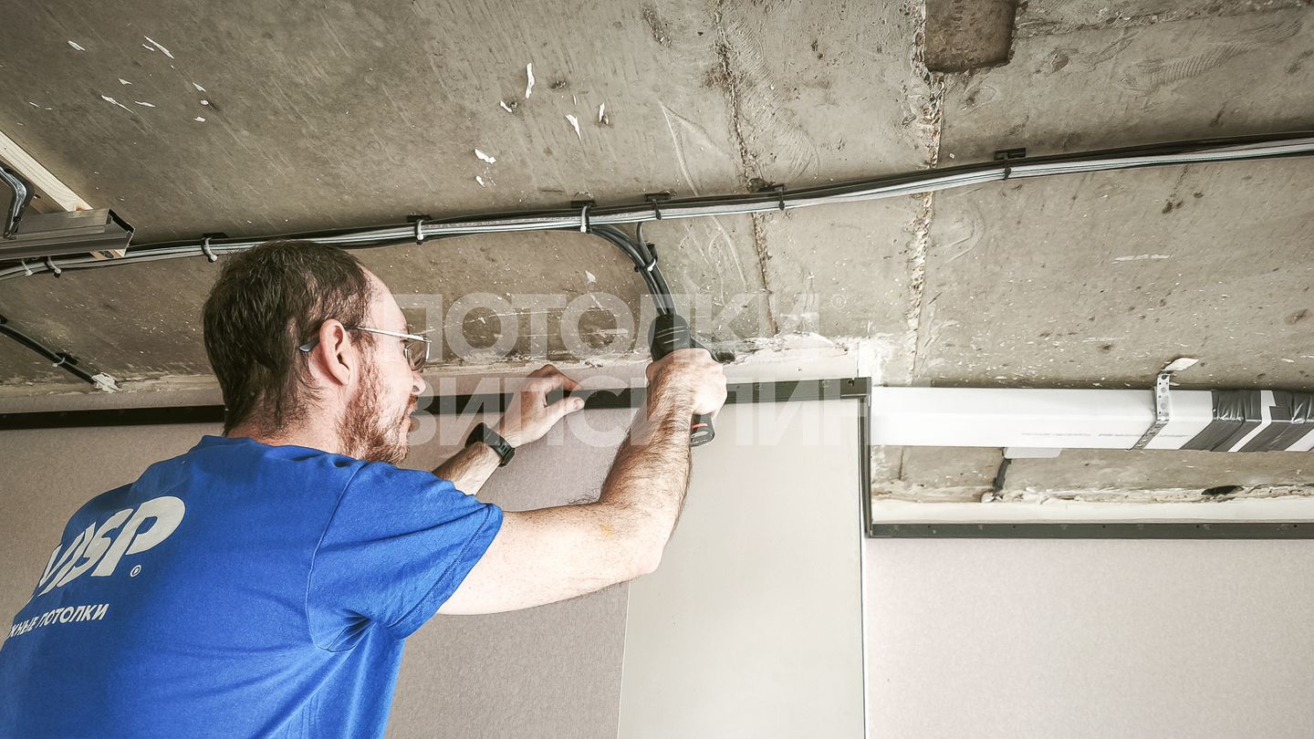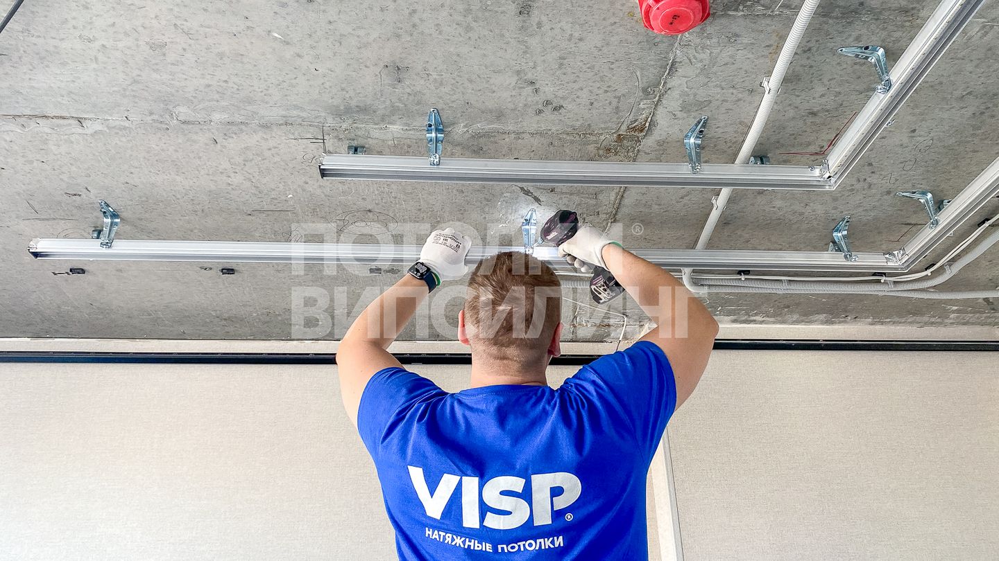 Монтаж потолка с профилем VISP BLACK 241 и полотном VISP M9001 (4.90) 23 м2 в квартире