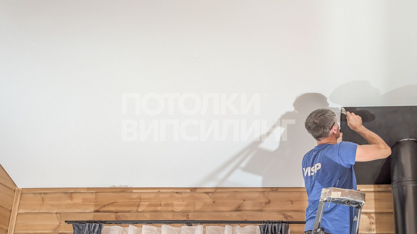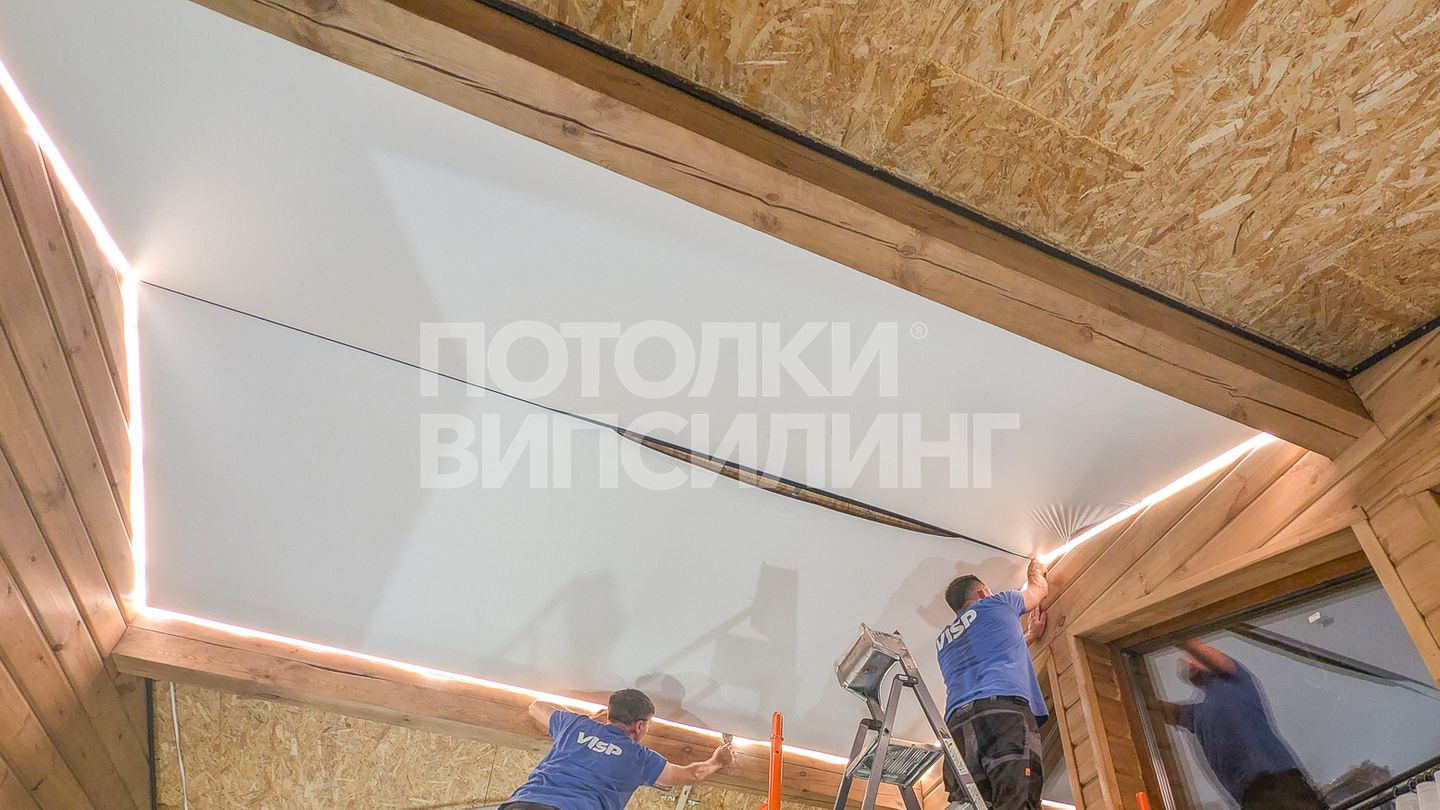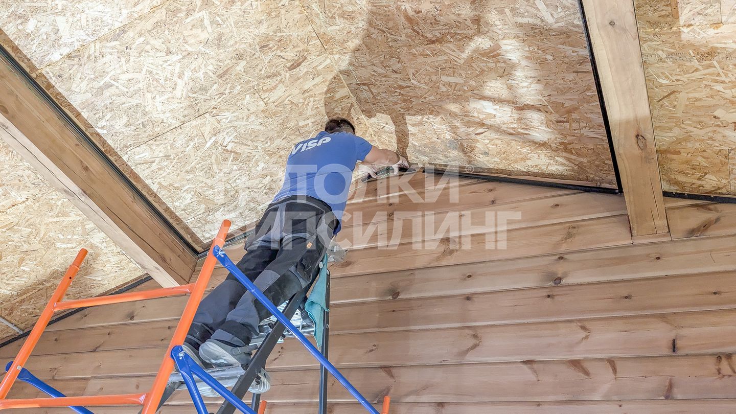 Монтаж потолка в деревянном доме 33 м2 с использованием пленки VISP S9020 (3.25)