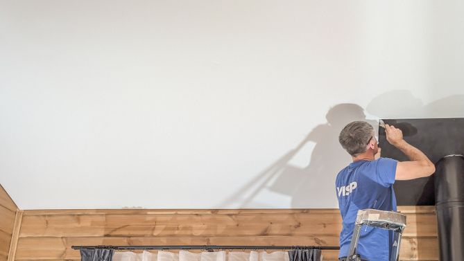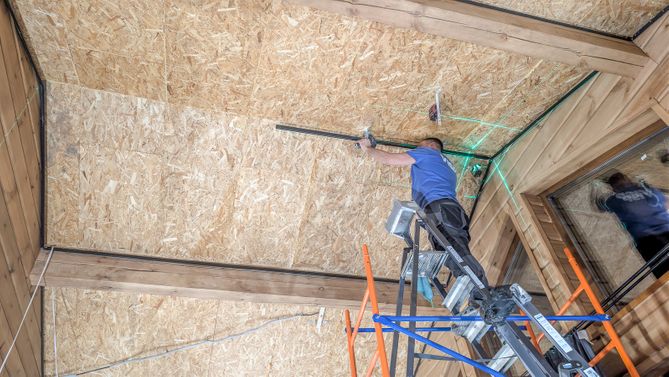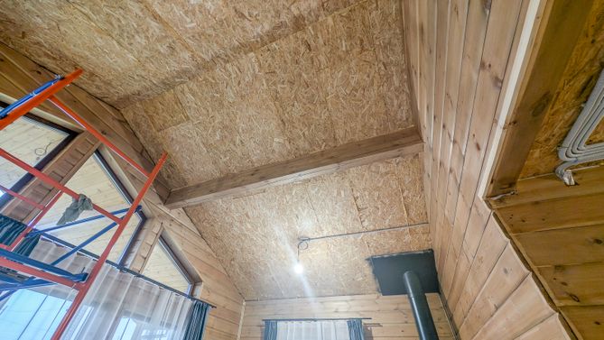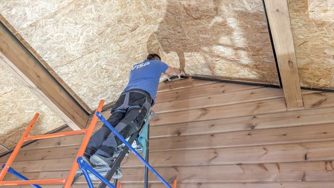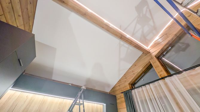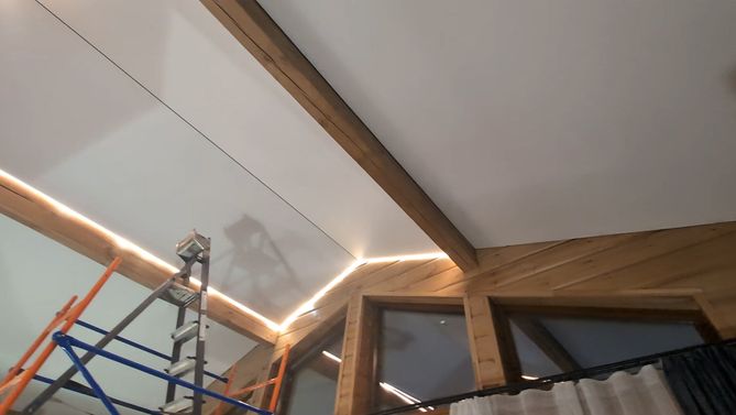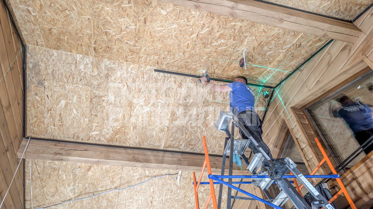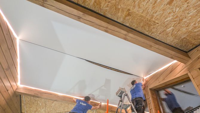 Монтаж потолка в деревянном доме 33 м2 с использованием пленки VISP S9020 (3.25)