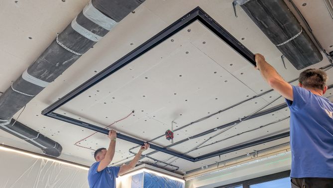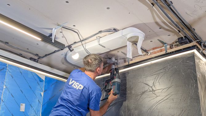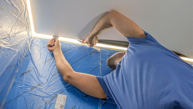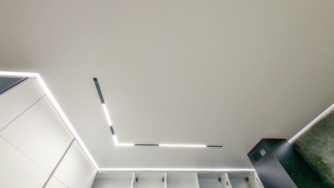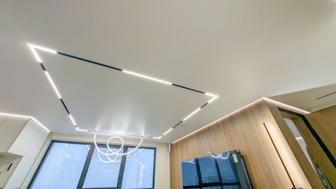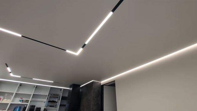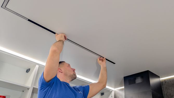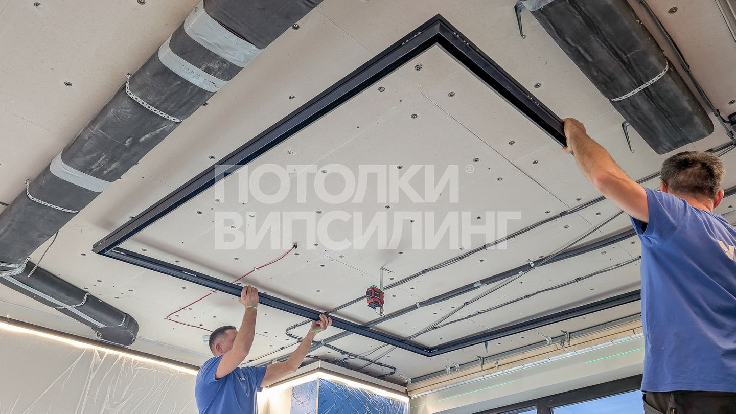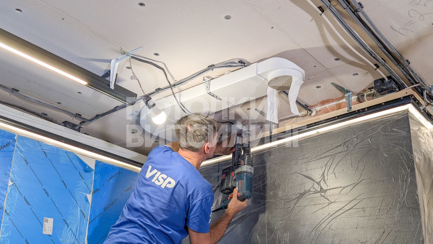 Монтаж потолка с профилем VISP BLACK 241 и полотном VISP M9001 (6.25) 27 м2 в квартире