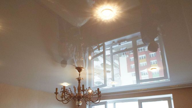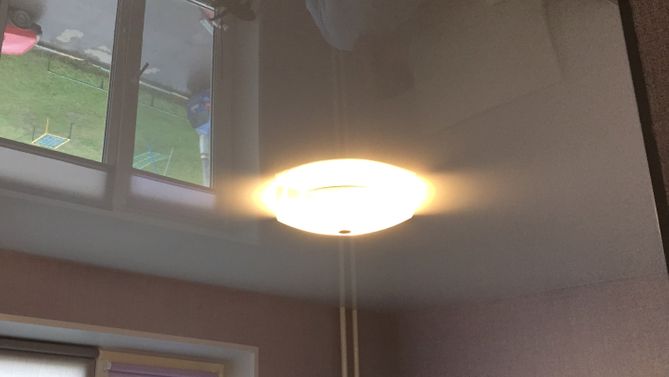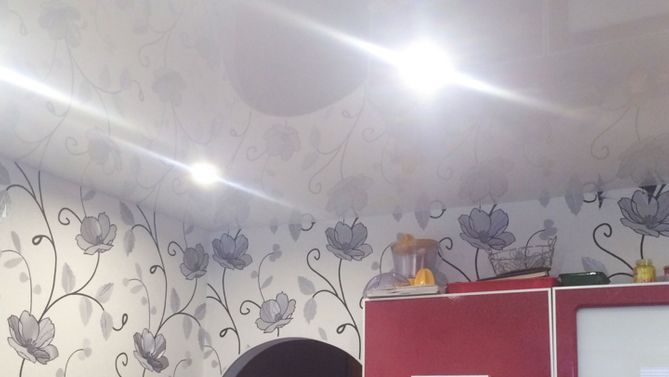 Бесшовный глянцевый натяжной потолок на кухню 9,2 м2