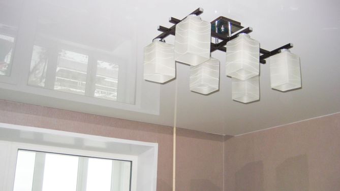 Бесшовный глянцевый натяжной потолок на кухню 13,6 м2