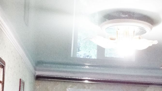 Бесшовный глянцевый натяжной потолок на кухню 8,8 м2