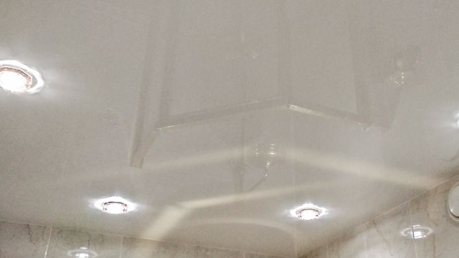Бесшовный глянцевый натяжной потолок в ванную комнату 5,6 м2