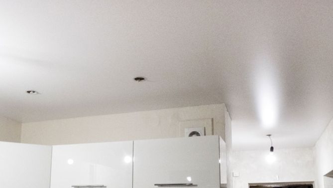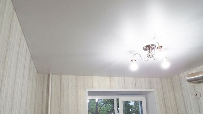 Бесшовный сатиновый натяжной потолок на кухню 6,3 м2