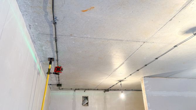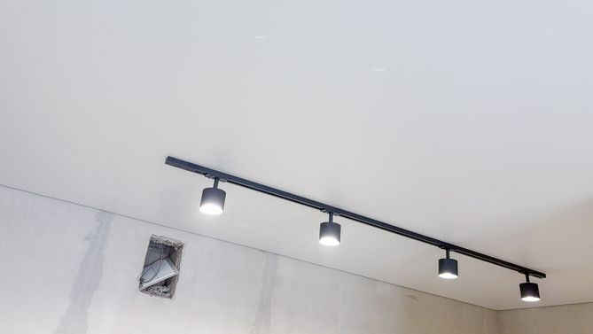 Натяжное полотно скрывает электропроводку, коммуникации и дефекты базового потолка