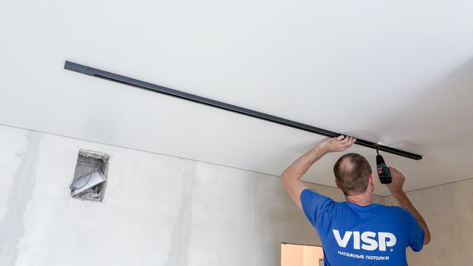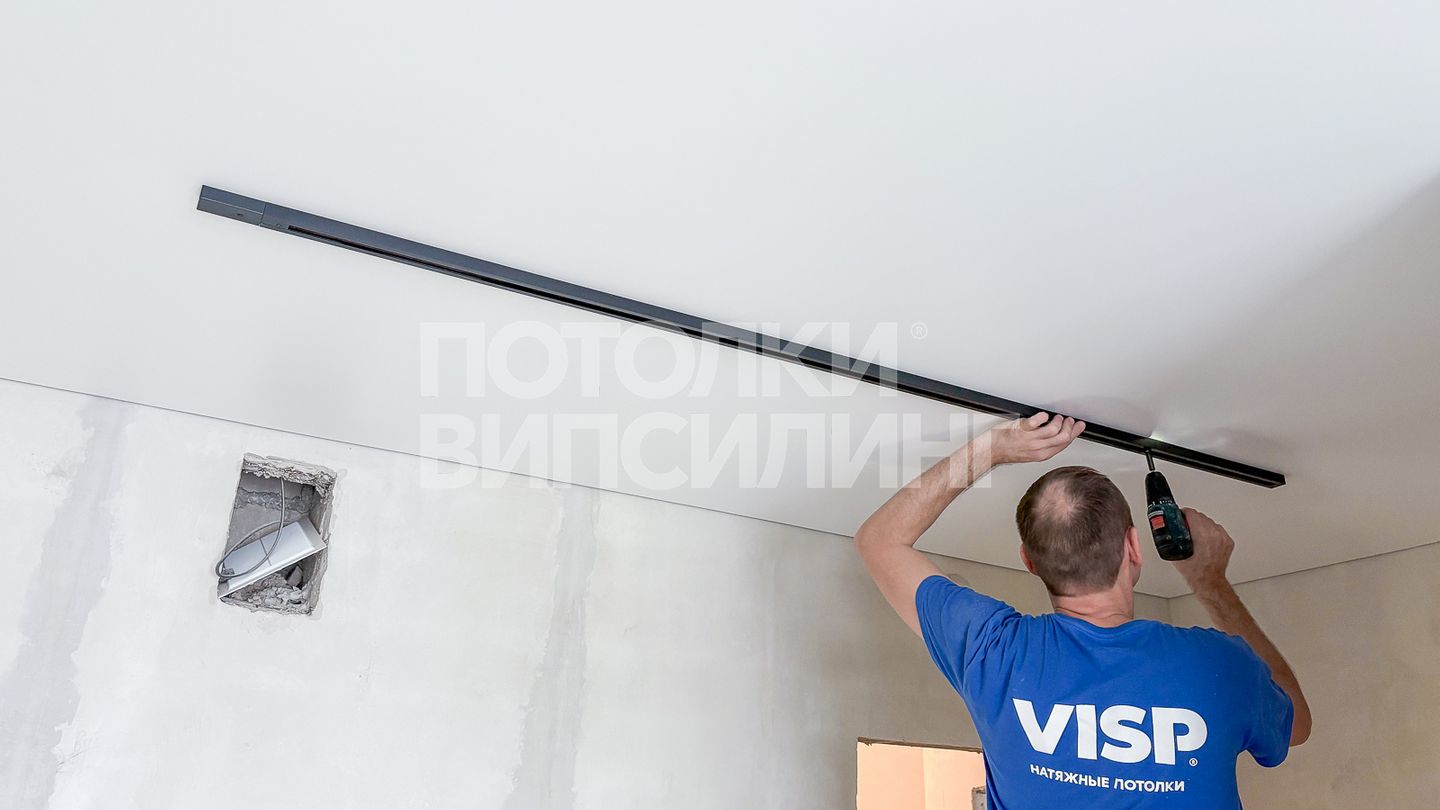 Монтаж потолка с профилем VISP BLACK 241 и полотном VISP M9001 (6.25) 32 м2 в квартире